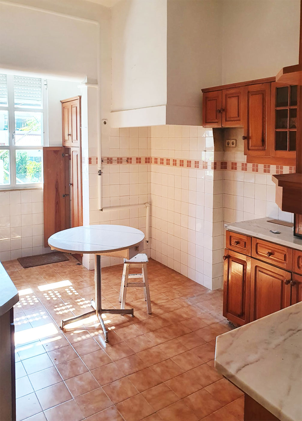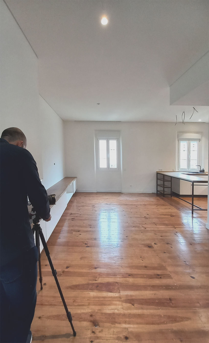 O estado inicial apresentava uma organização pouco eficiente, materiais envelhecidos e uma clara falta de ligação entre os espaços. A intervenção começou com um estudo cuidado do existente, permitindo identificar o potencial do imóvel e definir uma estratégia de projeto que equilibrasse memória e modo de vida do cliente.