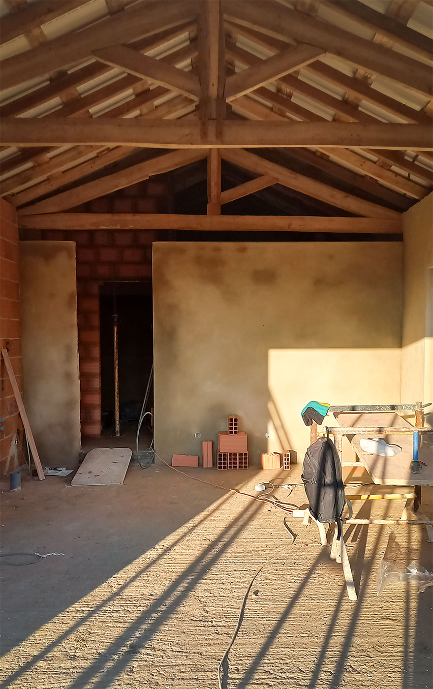 Implantado numa colina sobre a lezíria ribatejana, este projeto resulta da reabilitação de um antigo armazém agrícola, transformado numa habitação contemporânea, confortável e profundamente ligada à paisagem envolvente.