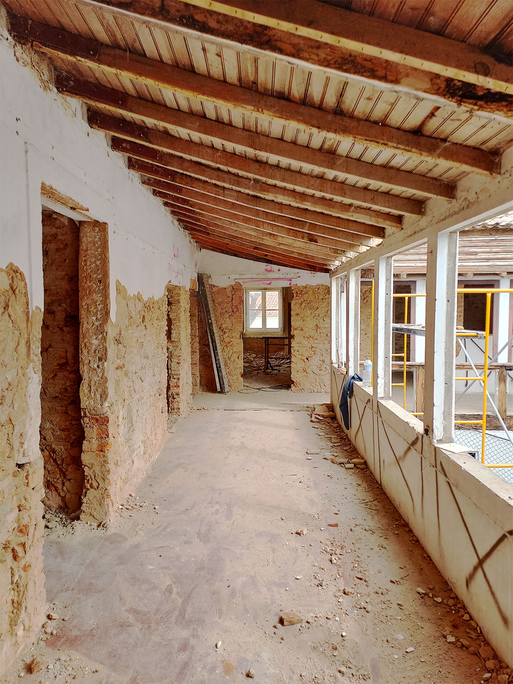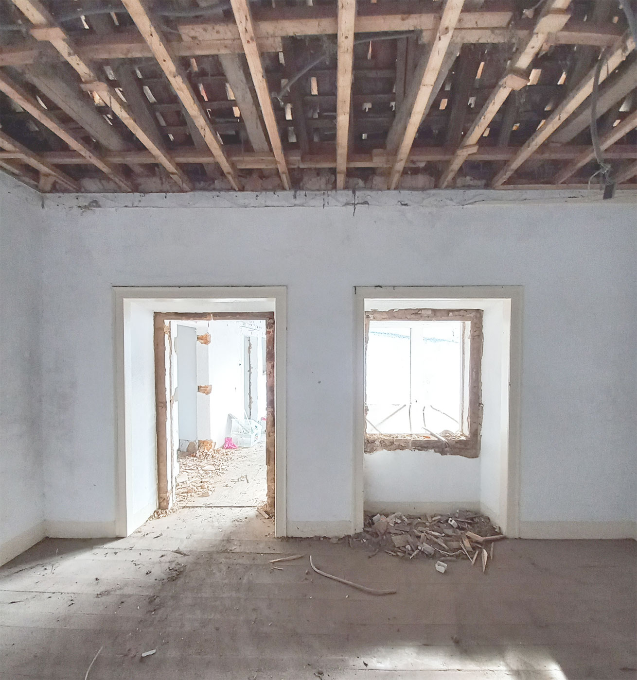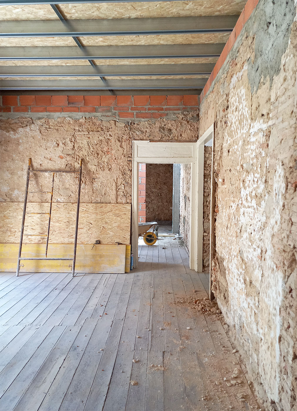 Ao longo da obra, foram visíveis as diferentes fases do processo — desde a exposição das estruturas originais até à redefinição completa dos interiores — evidenciando a complexidade inerente a uma reabilitação total.