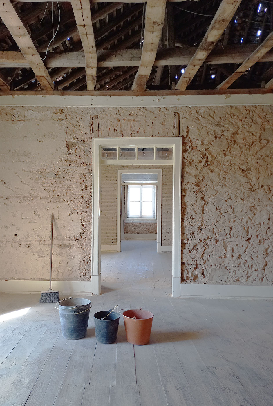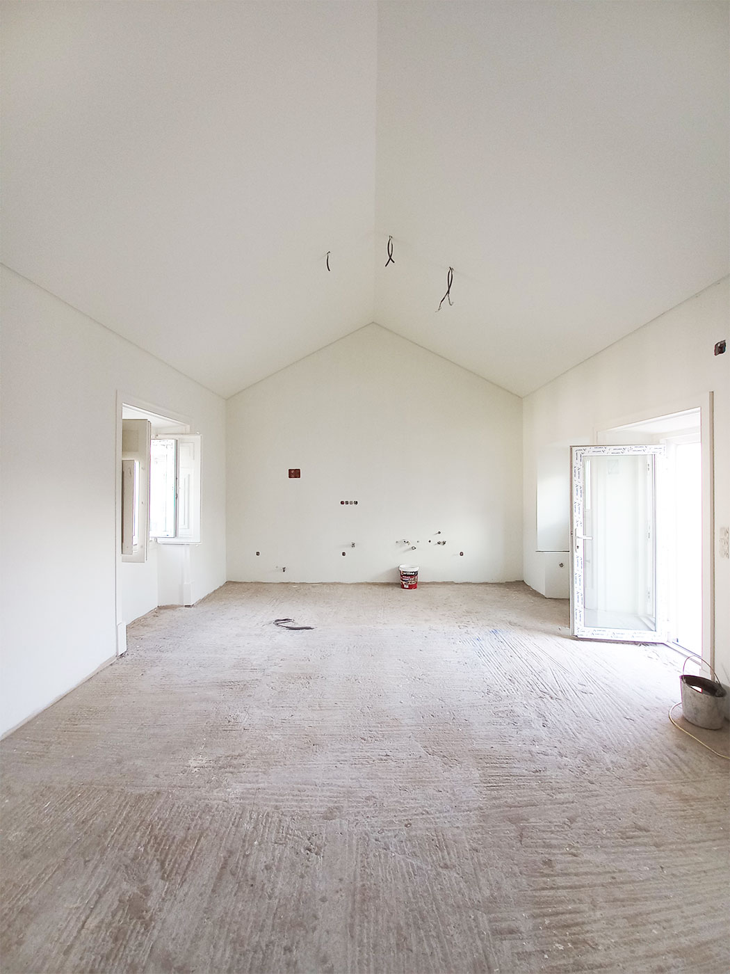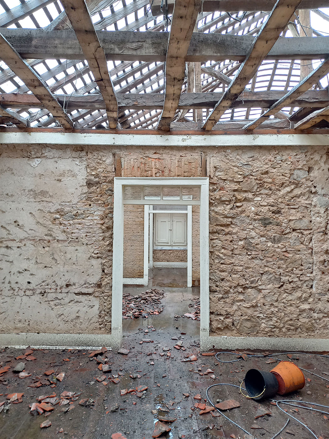 O estado inicial refletia o desgaste natural do tempo, com soluções construtivas desatualizadas e uma organização espacial pouco adequada às necessidades atuais. A intervenção iniciou-se com um levantamento rigoroso do existente, permitindo compreender o edifício na sua totalidade — desde a sua lógica construtiva até ao seu potencial de transformação.
