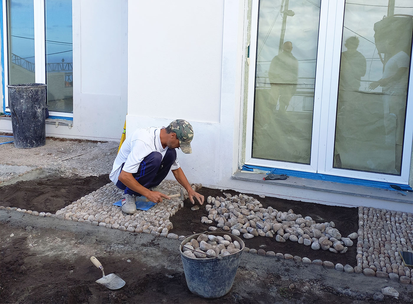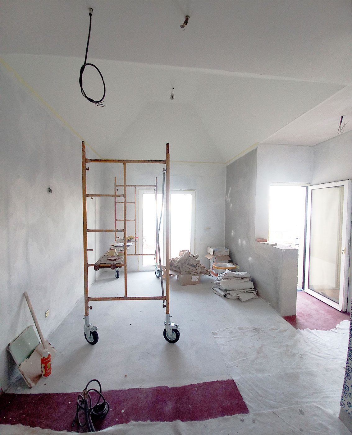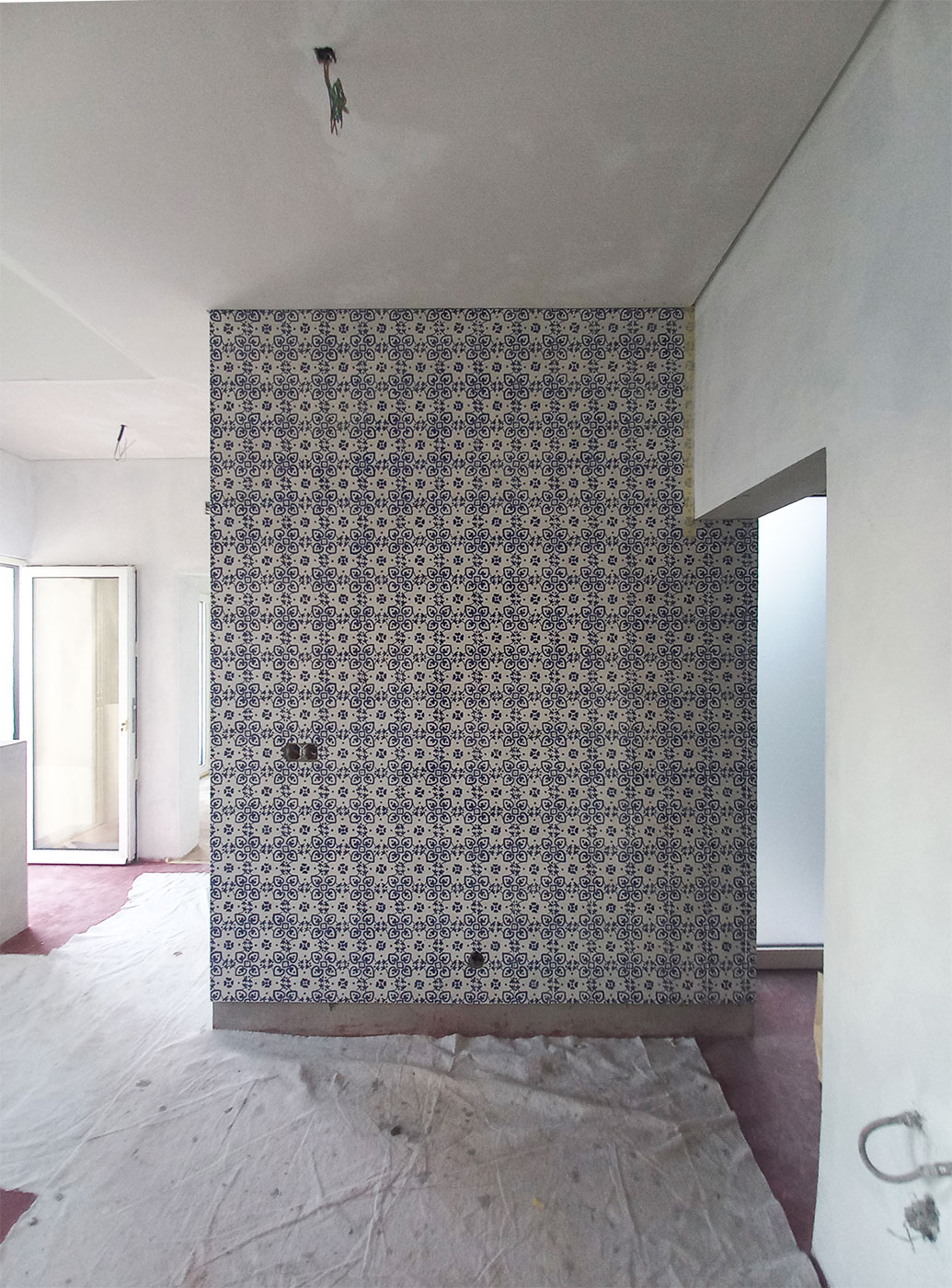 Ao nível construtivo, optou-se por soluções compatíveis com a pré-existência, nomeadamente a utilização de rebocos e pinturas à base de cal, garantindo não só a autenticidade material, mas também o adequado comportamento térmico da construção.